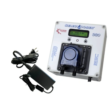 The Select Doser™ 380 by Genesis Instruments is a proportional additive pump ideal for agricultural and industrial operations to accurately dispense vaccines, medications, vitamins, sanitizers and other solutions into low-or high-pressure water systems.