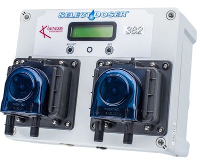 The Select Doser™ 382 by Genesis Instruments is a proportional additive pump ideal for agricultural and industrial operations to accurately dispense vaccines, medications, vitamins, sanitizers and other solutions into low-or high-pressure water systems.